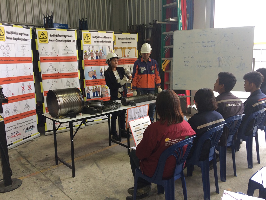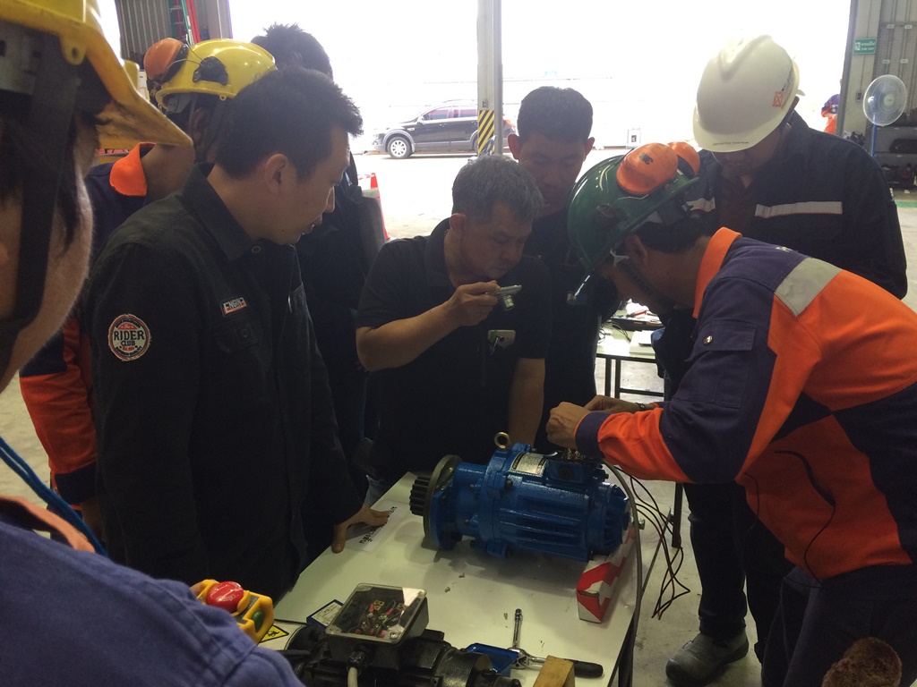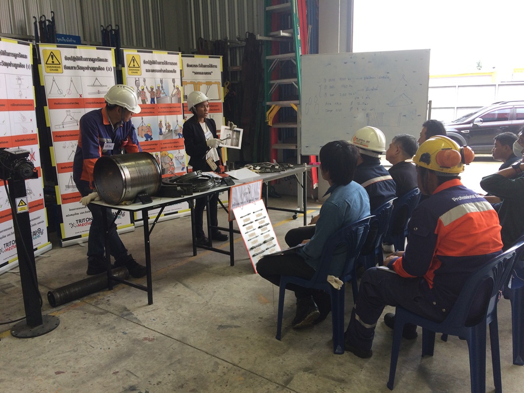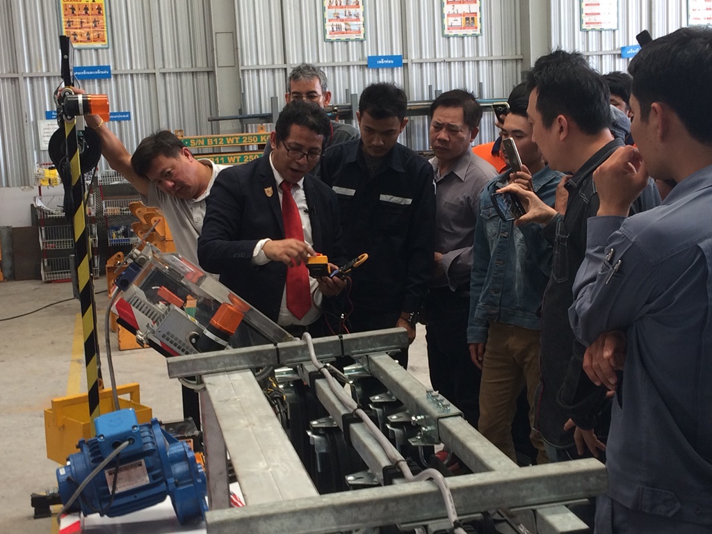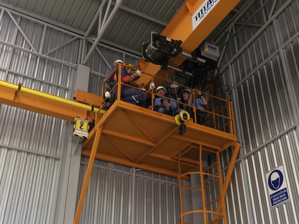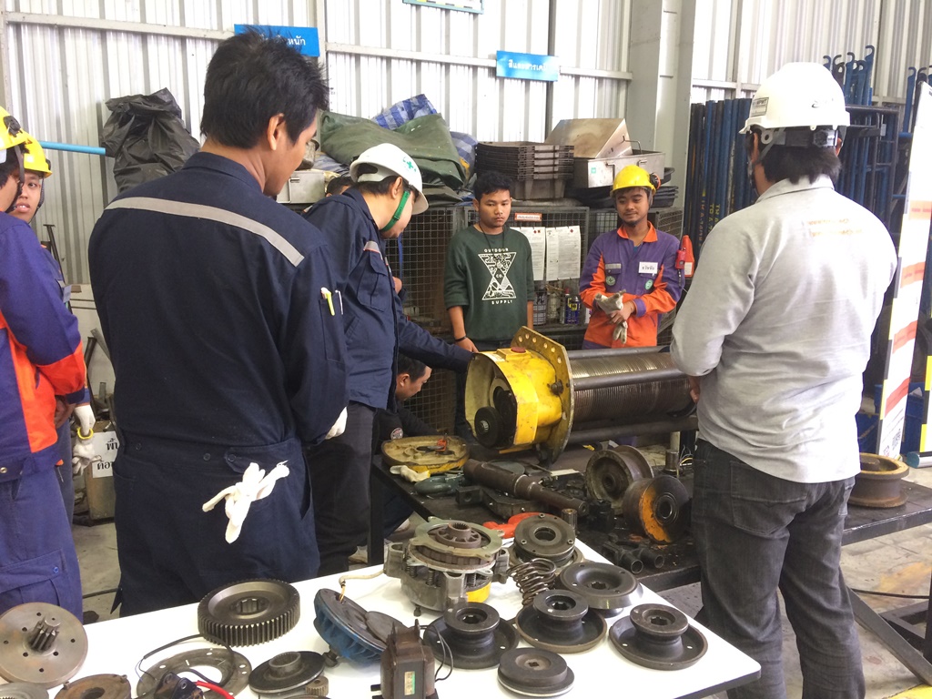 8-9/3/2561 อบรมหลักสูตรเทคนิคการตรวจสอบและซ่อมบำรุงรักษาเชิงป้องกันสำหรับรอกไฟฟ้าและปั้นจั่นเหนือศีรษะ รุ่นที่ 2 ชมการสาธิตการตรวจสอบทดสอบน้ำหนักปั้นจั่นเหนือศีรษะ และ เทคนิคการซ่อมบำรุงรอกเครนเจาะลึก ได้แก่ ระบบเบรกและมอเตอร์ ระบบควบคุมไฟฟ้า สลิงและดรัม ระบบล้อขับ ณ.ศูนย์ฝึกอบรมปั้นจั่นเหนือศีรษะ บริษัท โททัล เมคคานิค จำกัด สาขา ศรีราชา ชลบุรี ทีมงานช่างวิศวกรศูนย์ฝึกอบรมปั้นจั่น